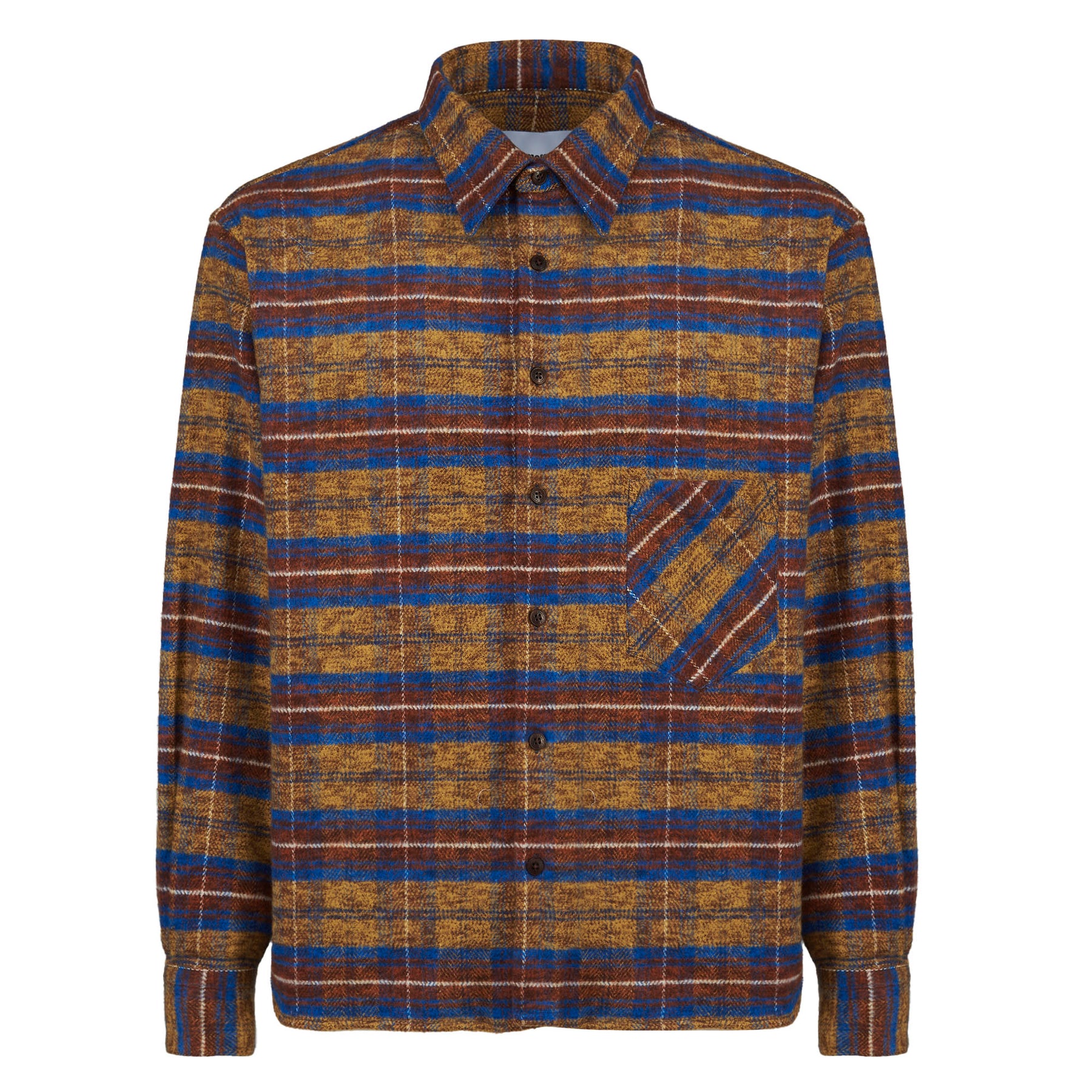 Camicia large fit con collo italiano, tasca applicata sul petto, maniche lunghe e fondo dritto.
