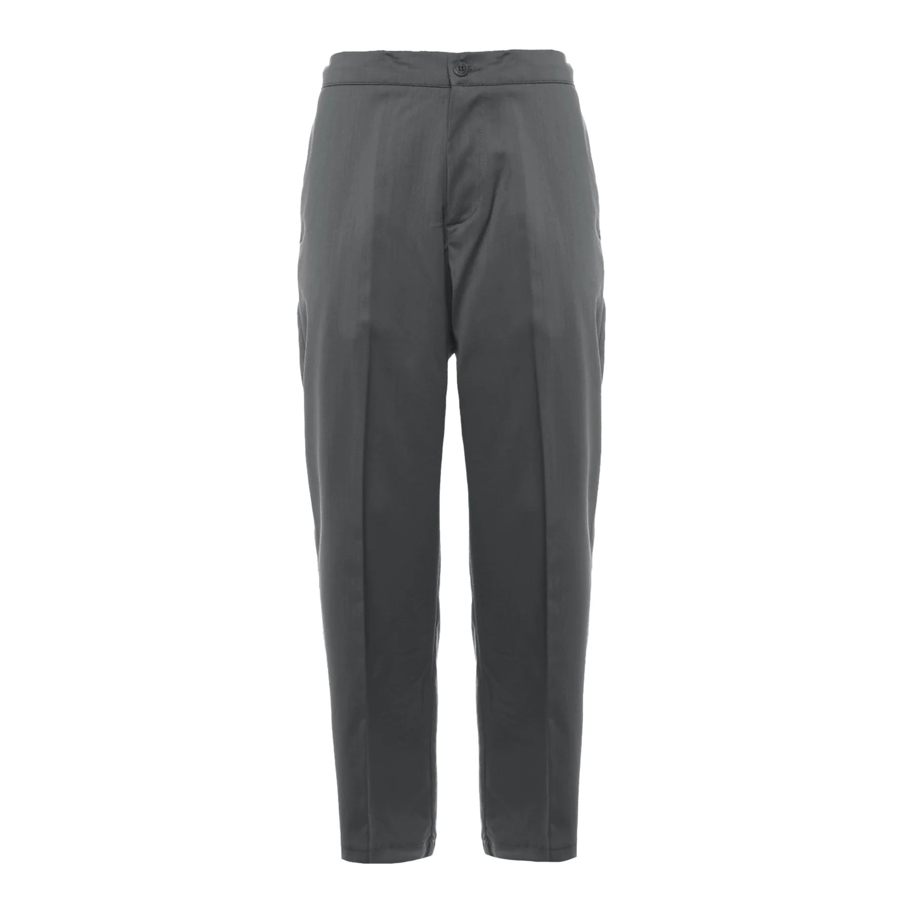 Pantaloni regular fit con coulisse e laccio in vita in lana, chiusura con un bottone. Presentano due tasche inserite sui fianchi e due tasche a filetto sul retro. Fondo gamba 19 cm.