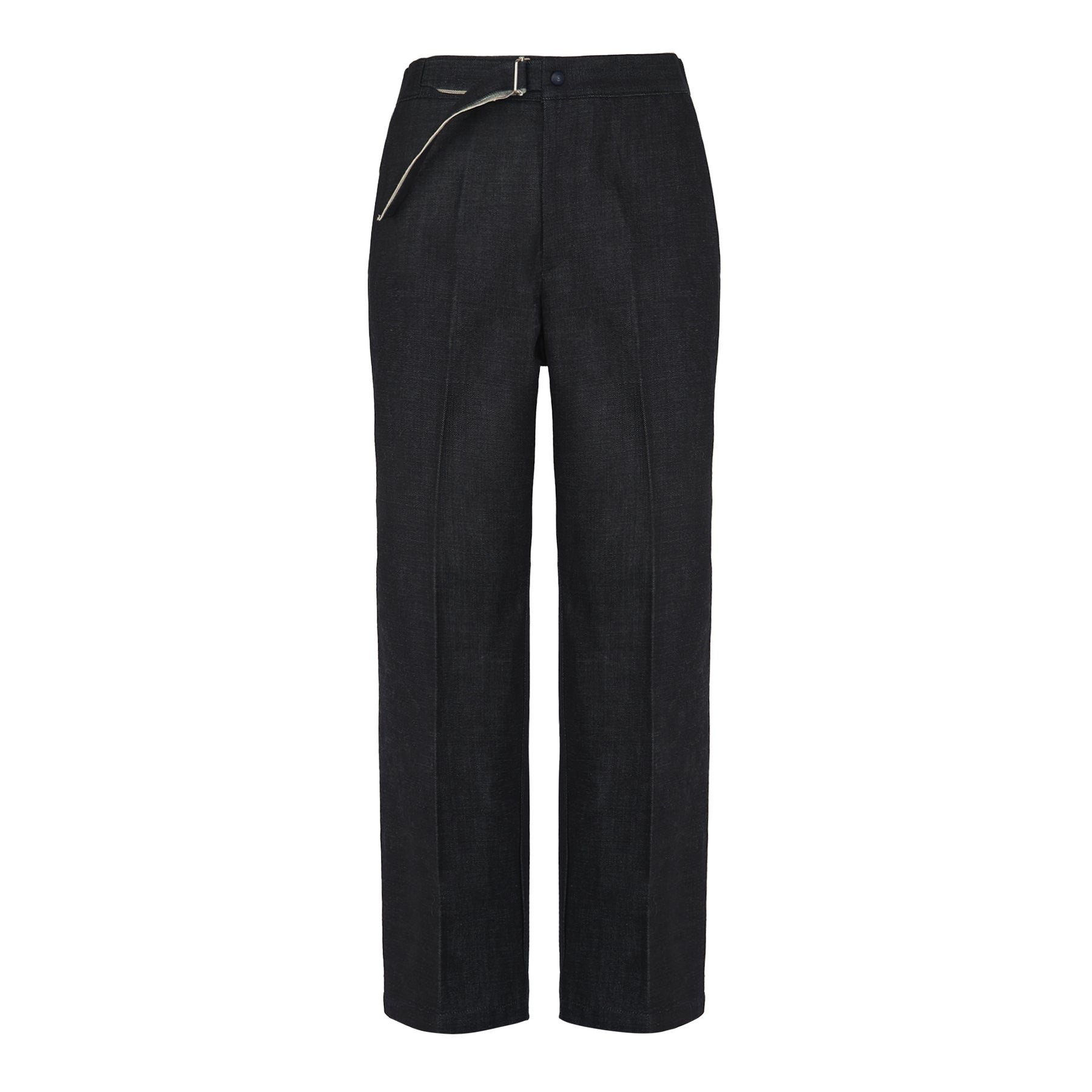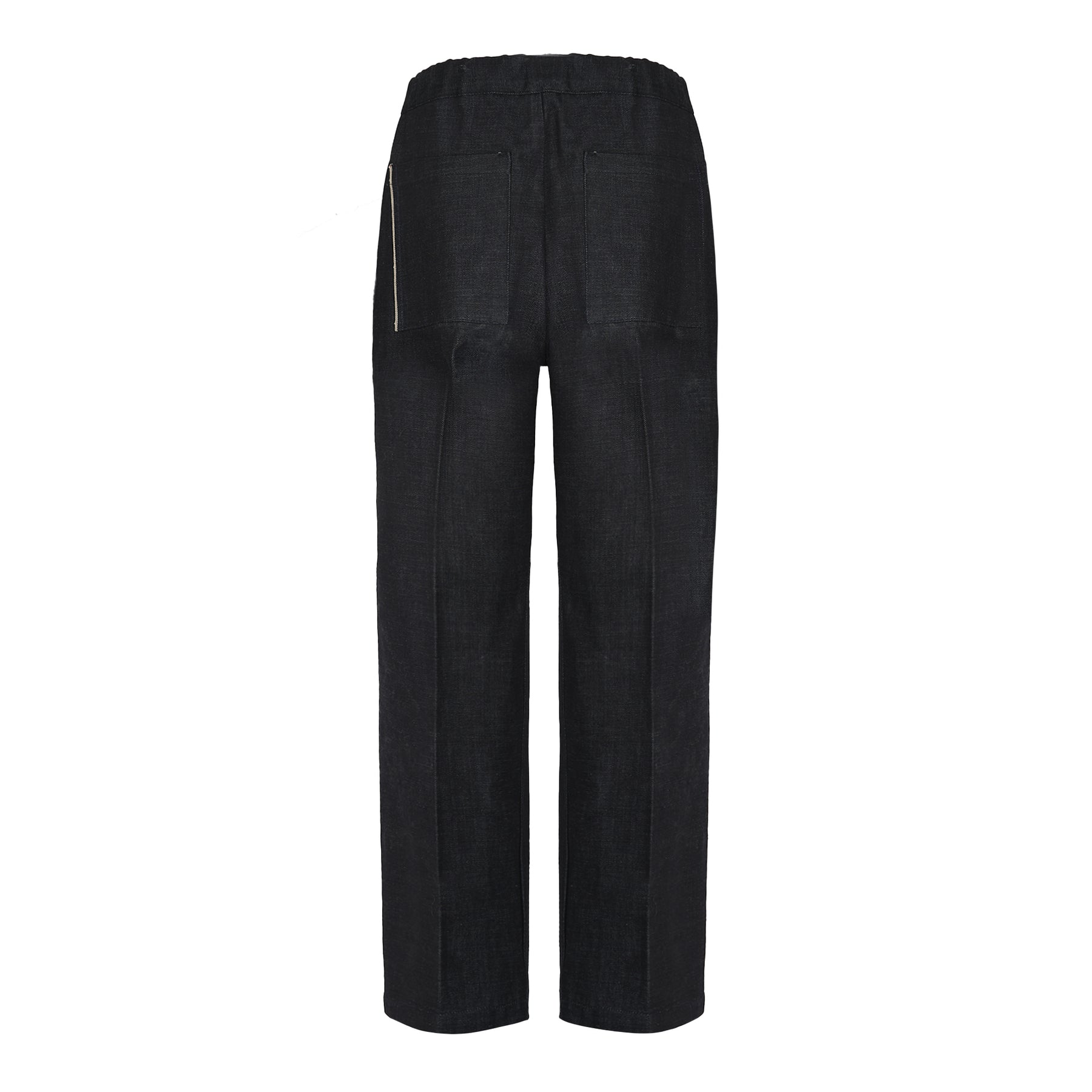 Pantaloni large fit con coulisse e cintura, chiusura con bottone a pressione, tasche frontali a 1/4 e due tasche applicate sul retro. Fondo gamba 22 cm.