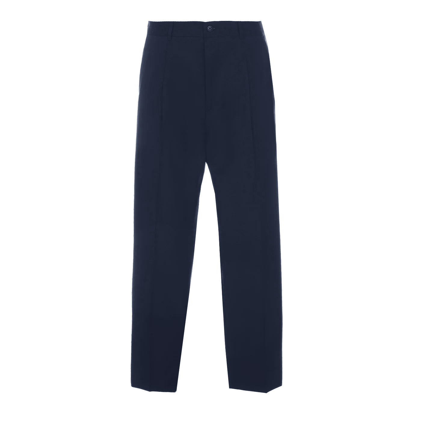 Pantaloni large fit in lana con una pince, tasca frontale a 1/4 e tasca posteriore con patta. Fondo gamba 22 cm.