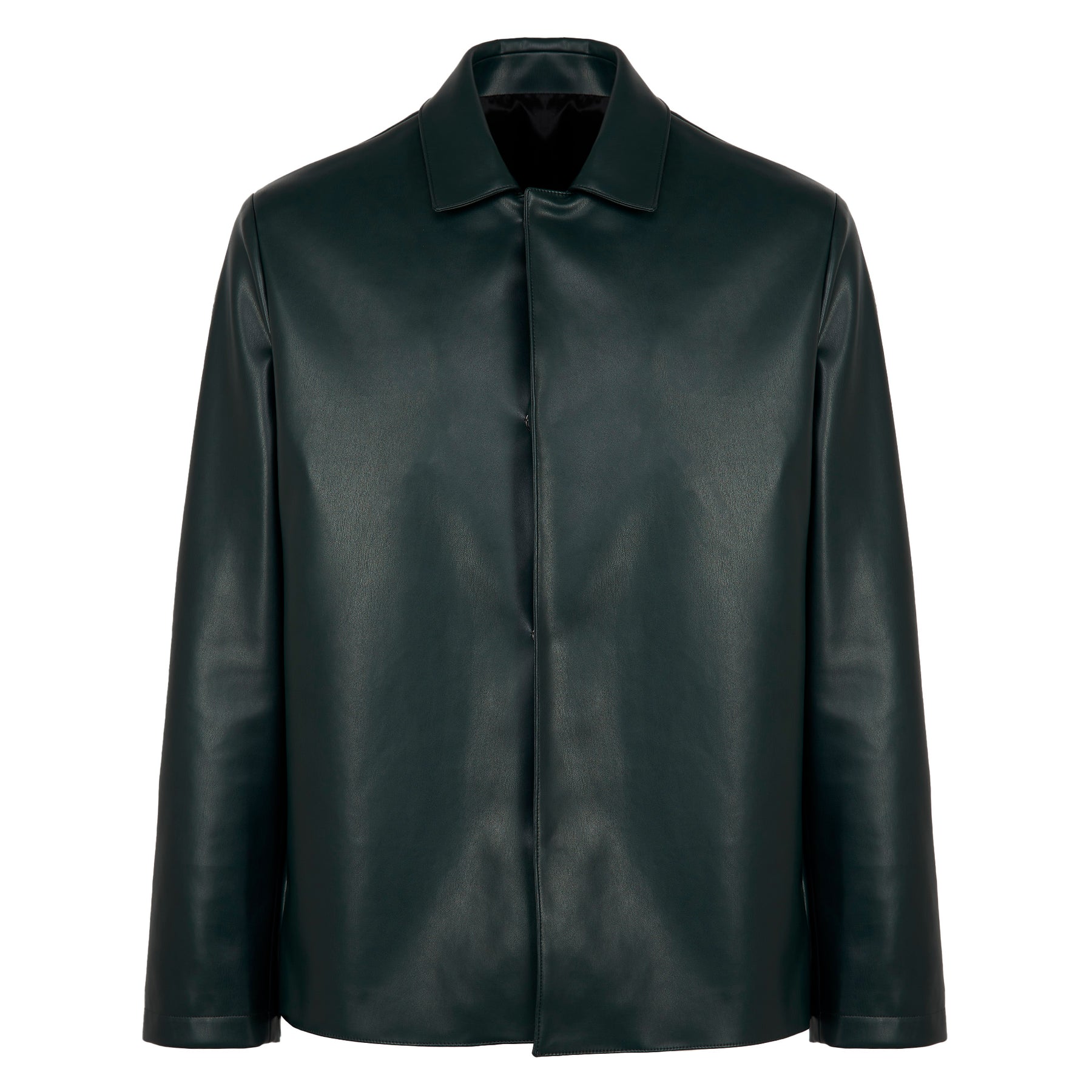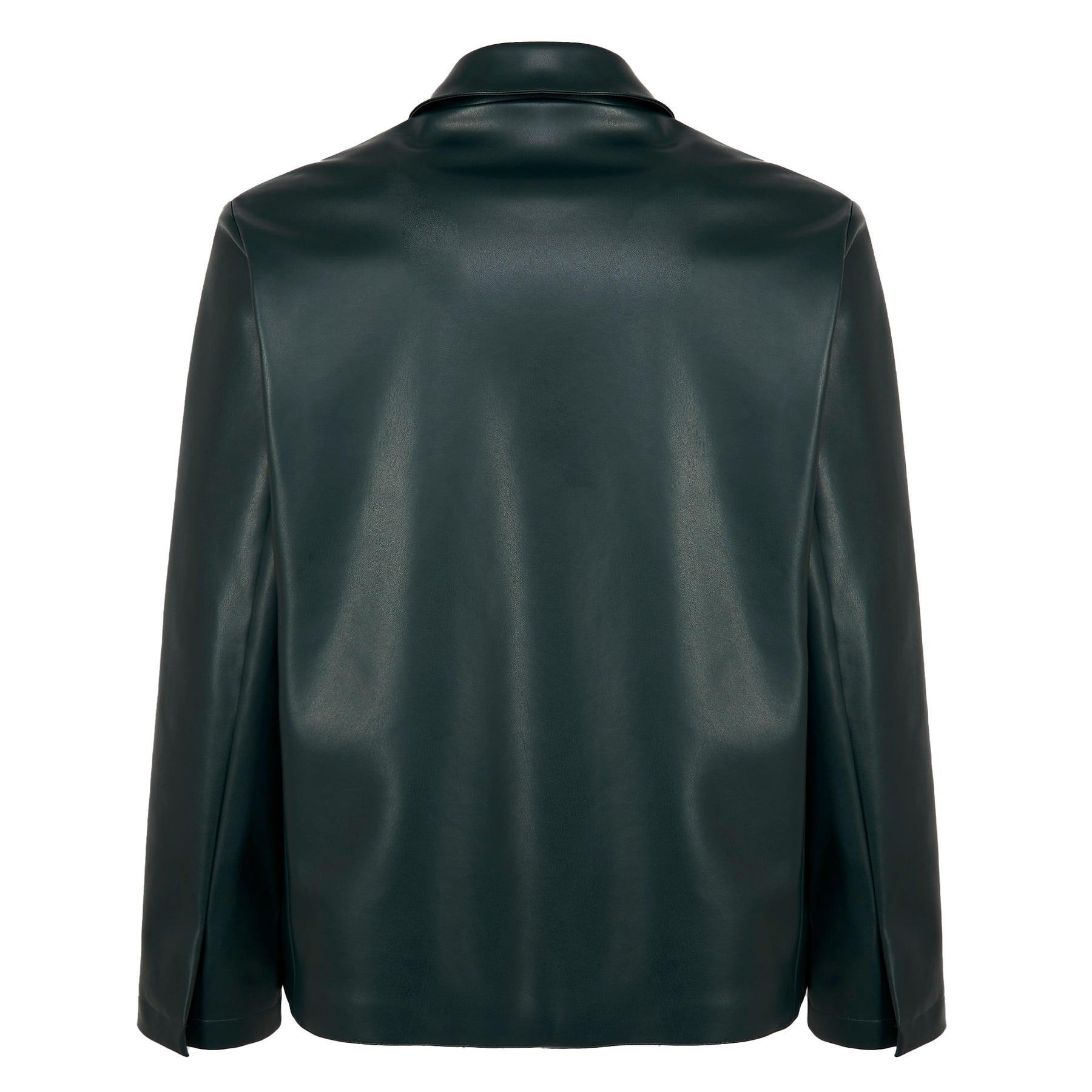 Mike blazer in dark petrol green in Vegan leather , with a regular fit and shirt collar.