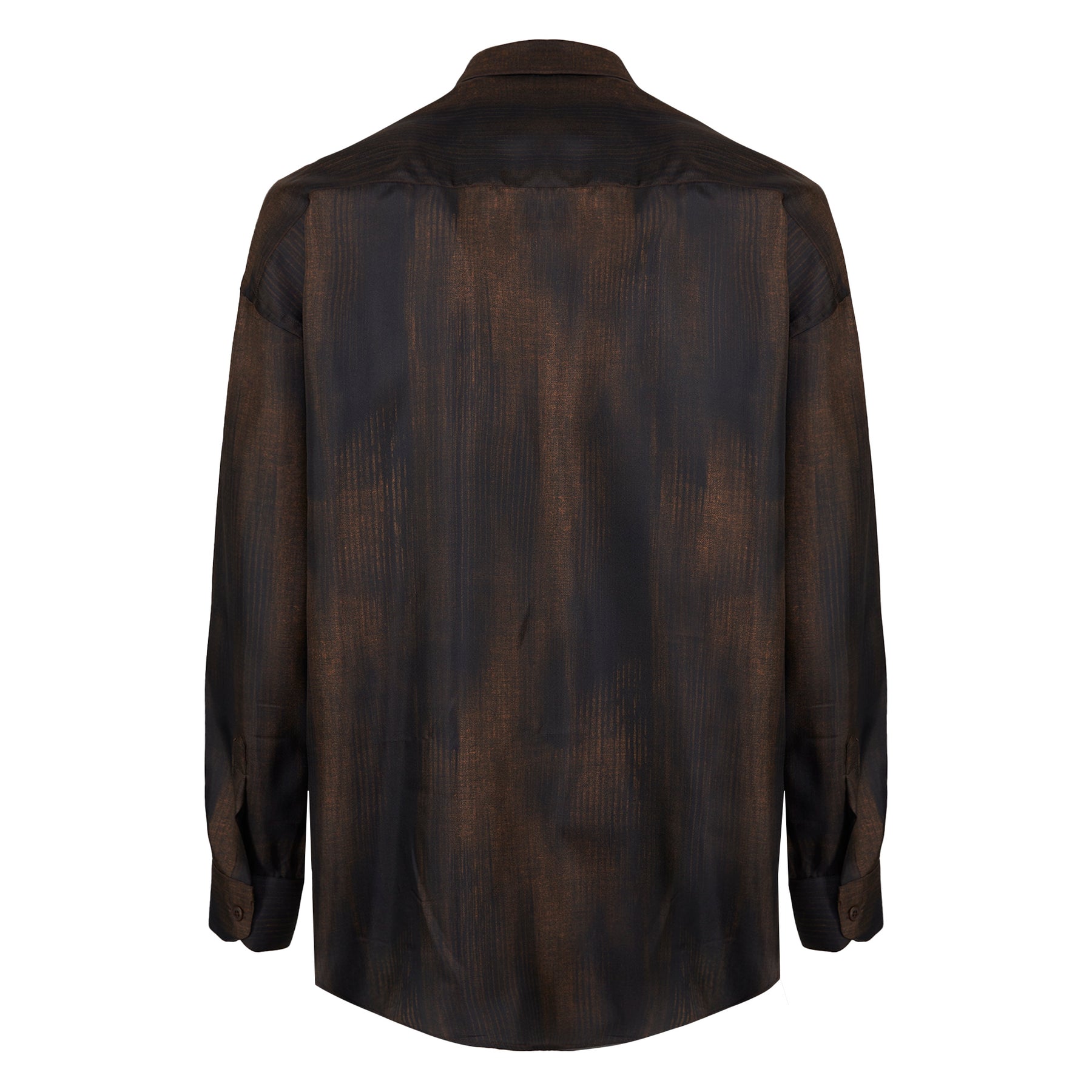 Valentino shirt made of light silk, enhanced by an abstract print on a brown background.