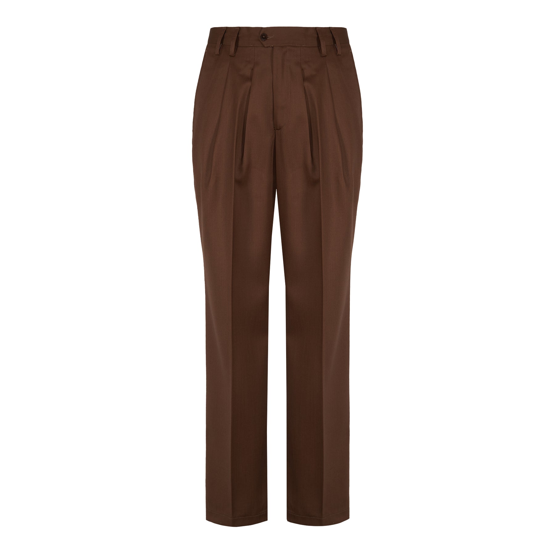 Brown Norrie trousers, with an oversized fit and double front pleat.