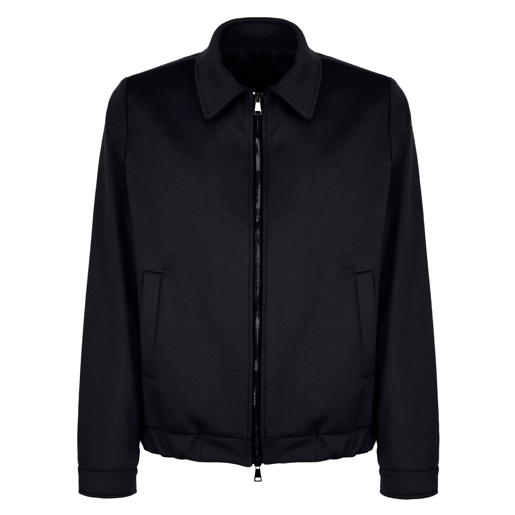 Dark blue Polov zip-up jacket made of virgin wool, finished with a shirt collar and side pockets.