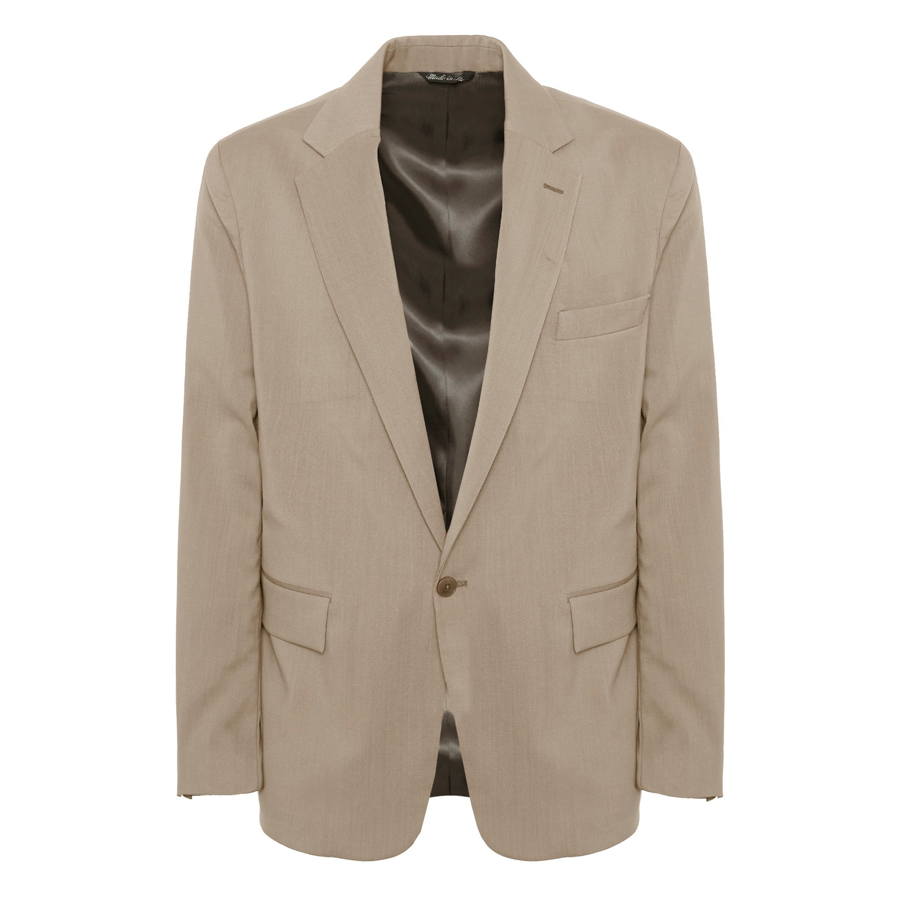 Blazer regular fit in lana con chiusura monopetto a un bottone. Dotato di due tasche con patta, taschino a filetto sul petto e spacco singolo sul retro.