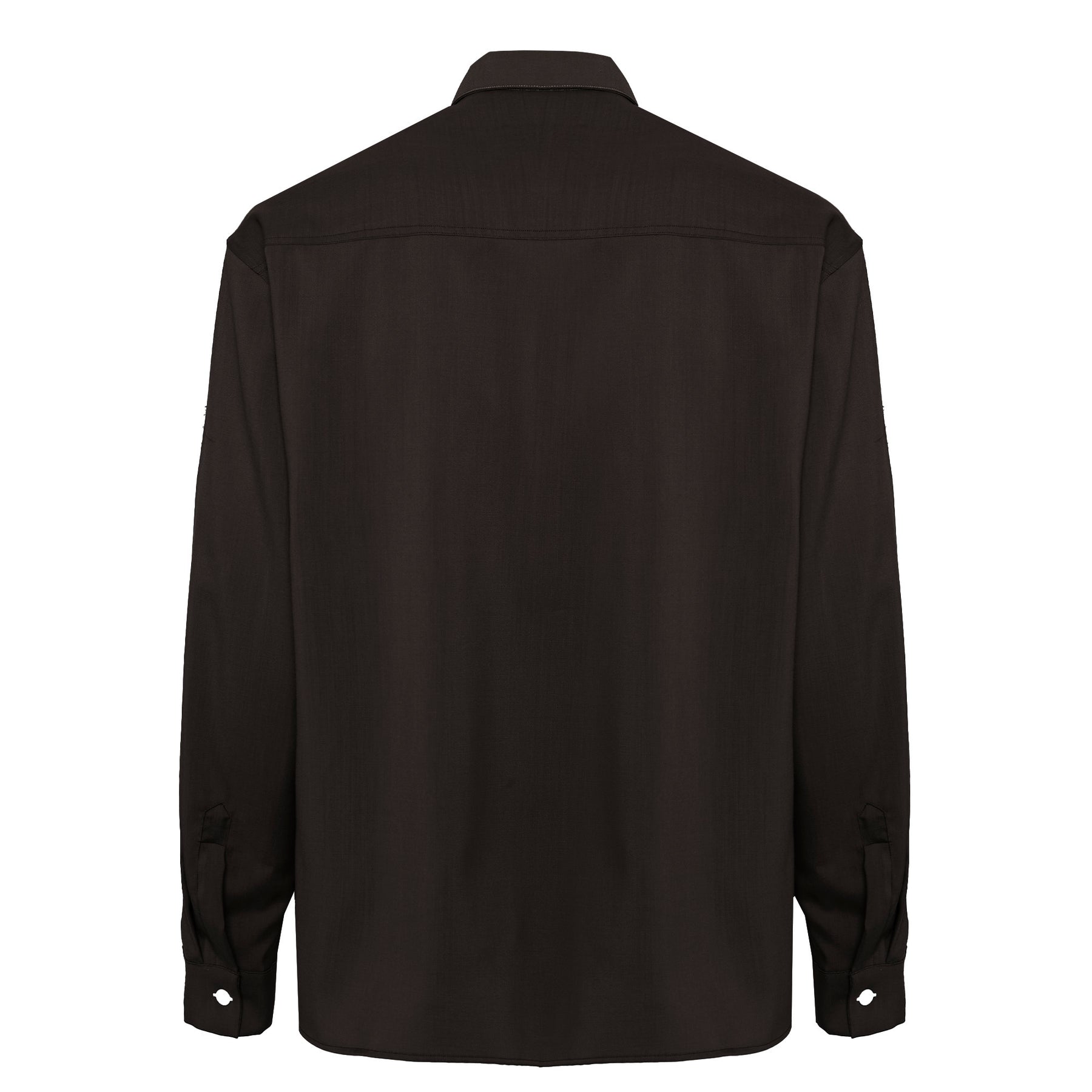 Patchwork design with Italian collar, chest patch pocket and straight hem.