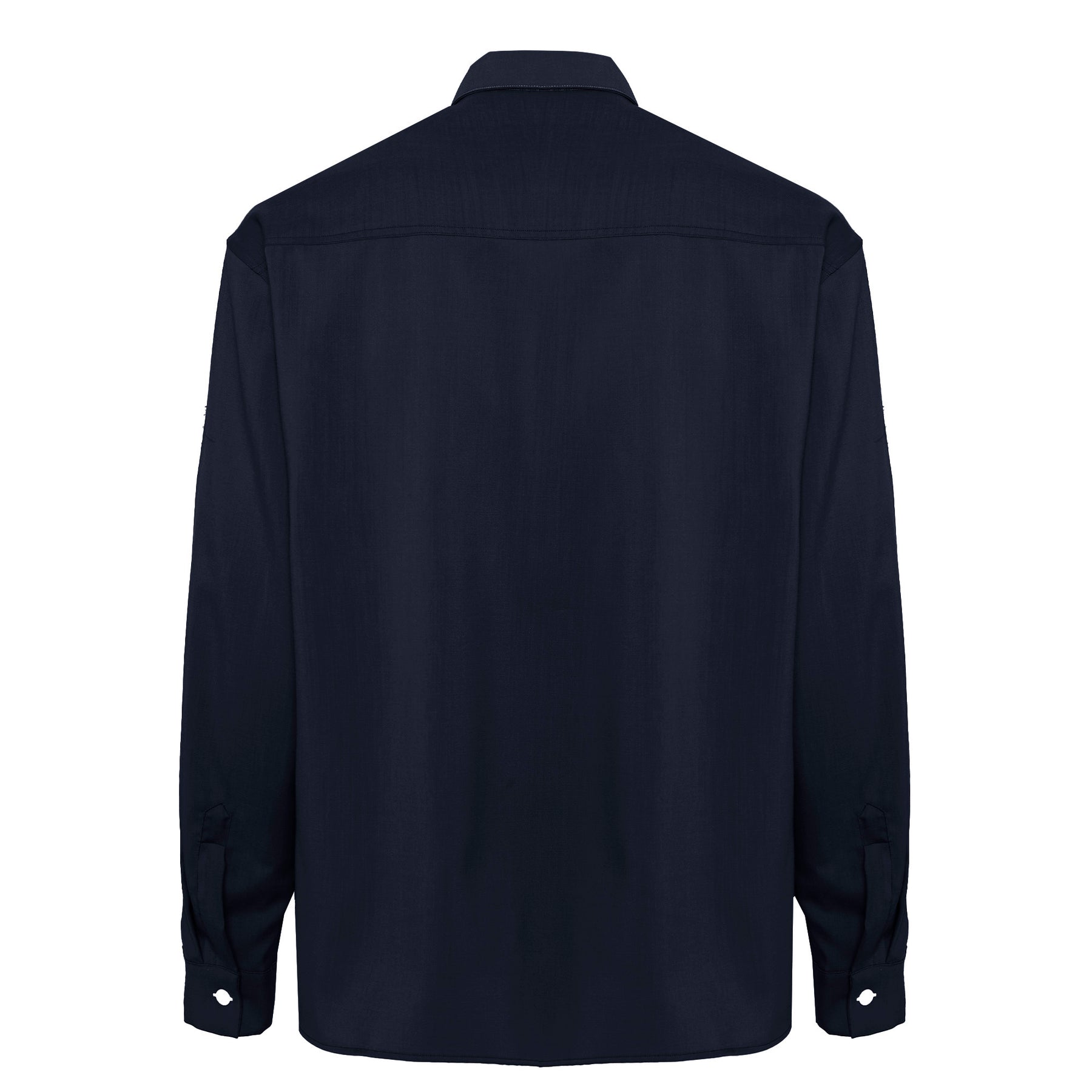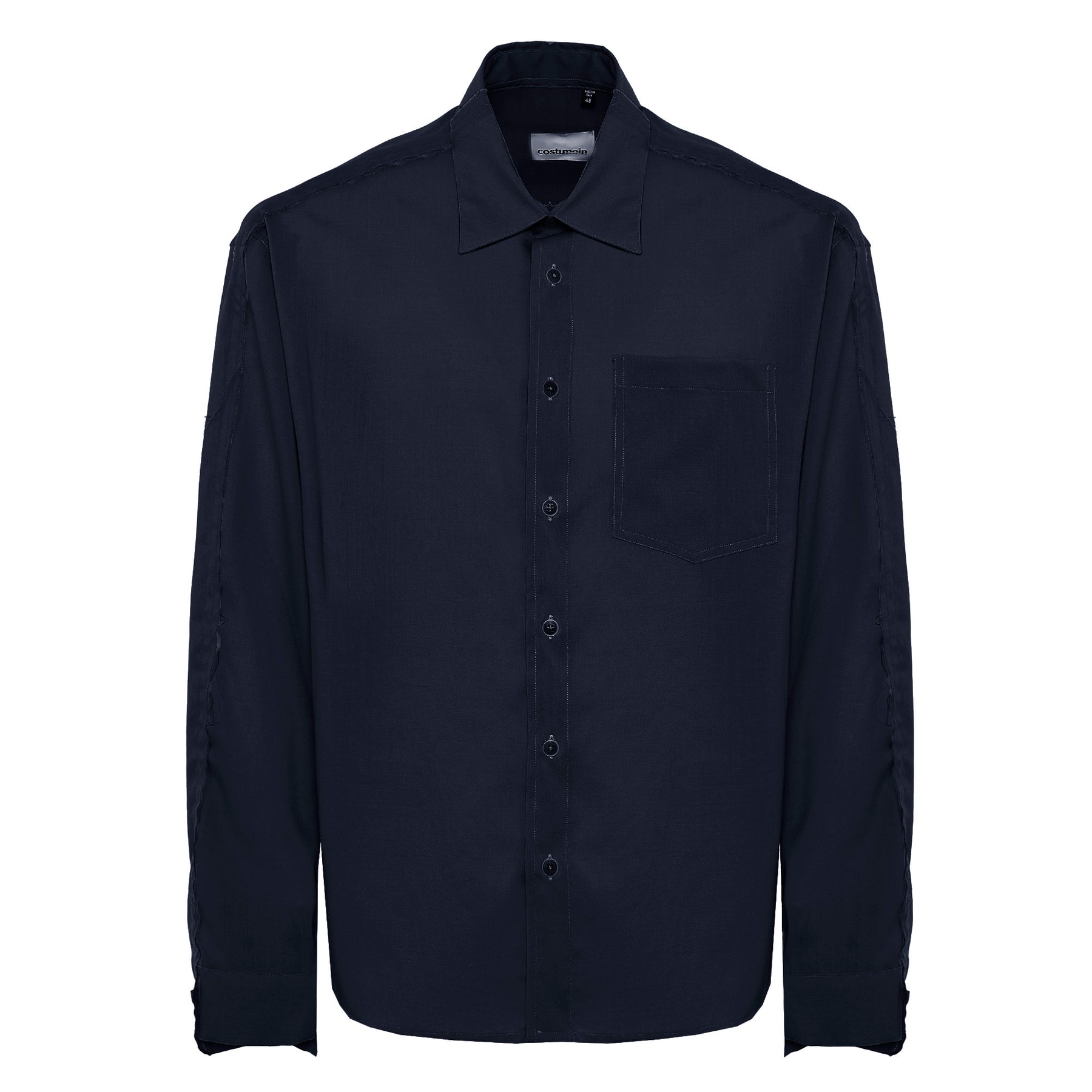 Patchwork design with Italian collar, chest patch pocket and straight hem.