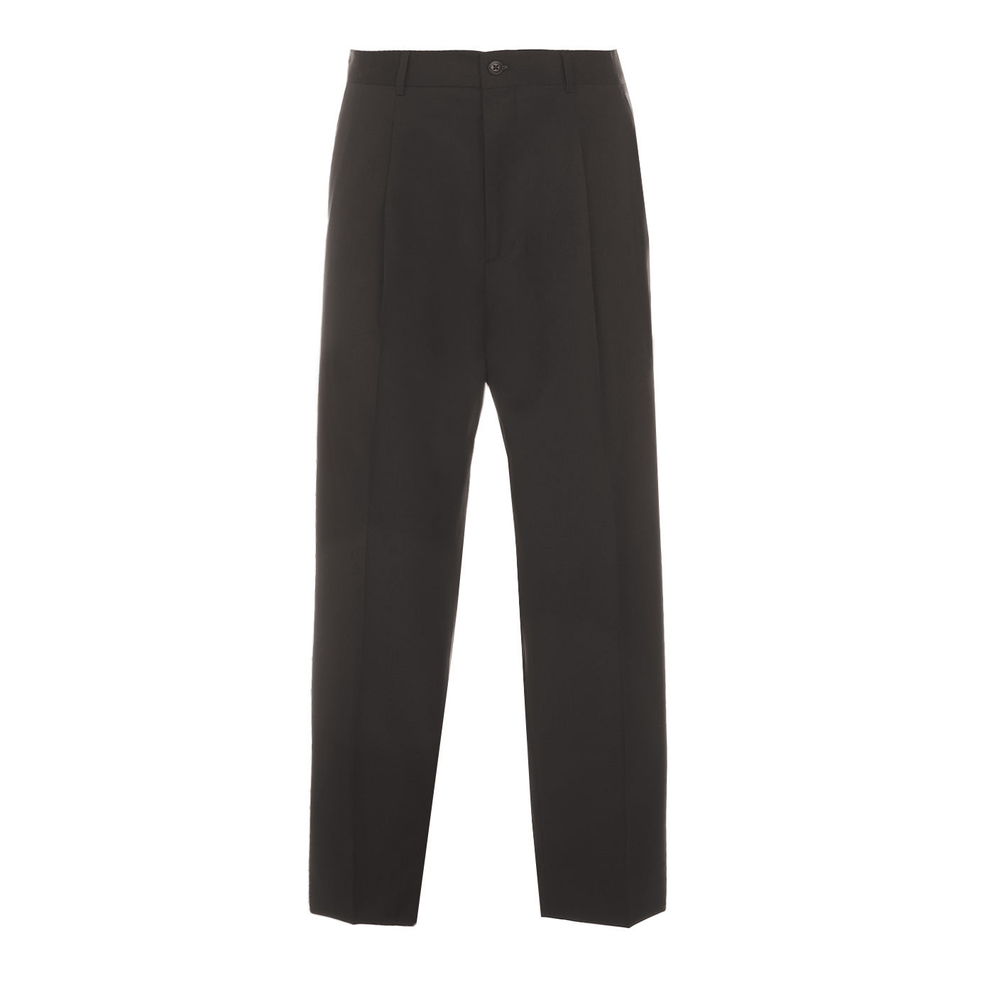 Pantaloni large fit in lana con una pince, tasca frontale a 1/4 e tasca posteriore con patta. Fondo gamba 22 cm.