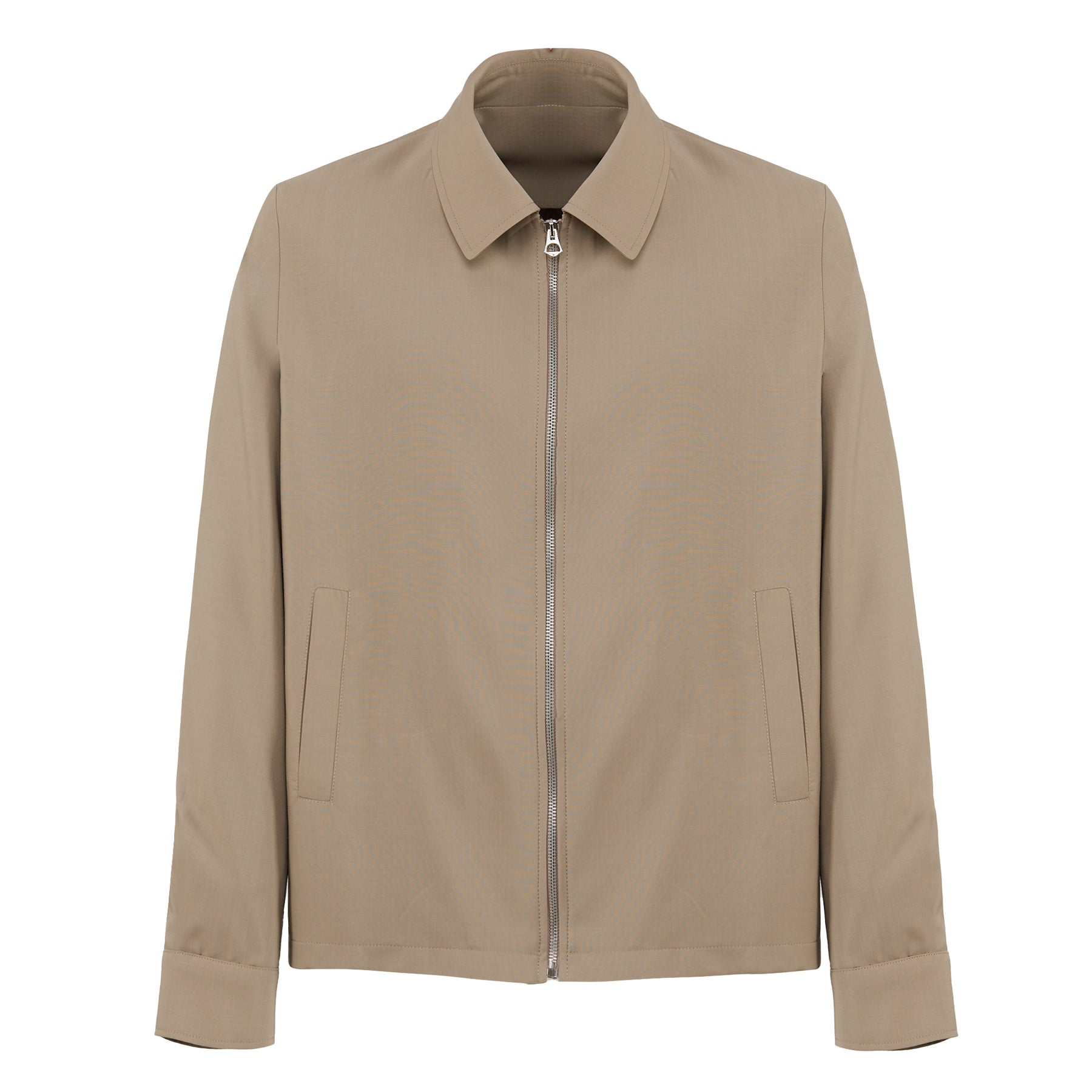 Giacca regular fit con colletto a camicia, chiusura frontale con zip e due tasche laterali.